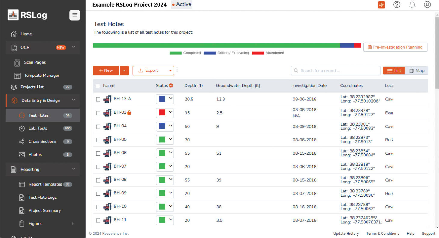 “RSLog’s centralized GIS system allows users to view all borehole data on a single map, facilitating the identification of potential hazards based on historical data and previous project experience.”