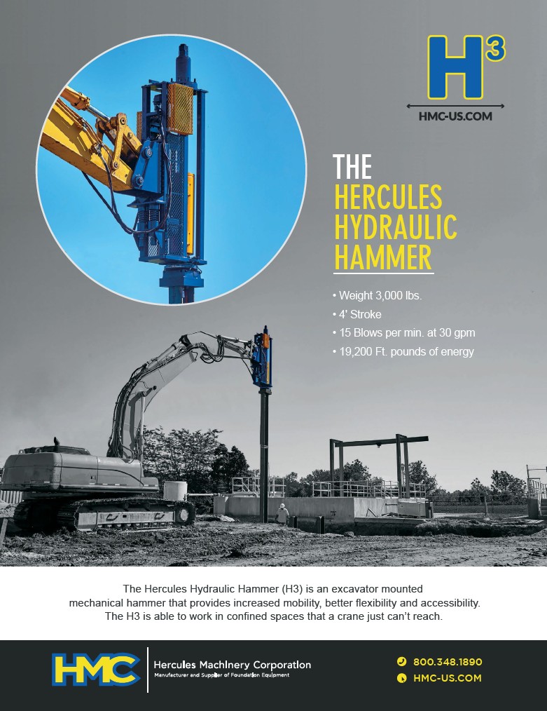 The Hercules Hydraulic Hammer (H3) is an excavator mounted